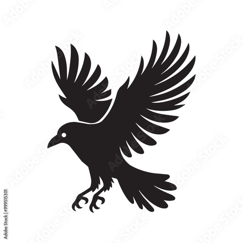 © Shineoxstock, Fototapeta premium Raven Bird Vector Illustration in black and white - Raven Clipart Design