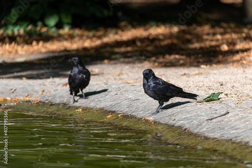 Obraz premium Raven Crows sitting at a pond