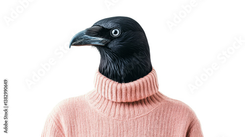 © Maestro, Fototapeta premium Raven head in pink turtleneck sweater, surrealism, cut out transparent