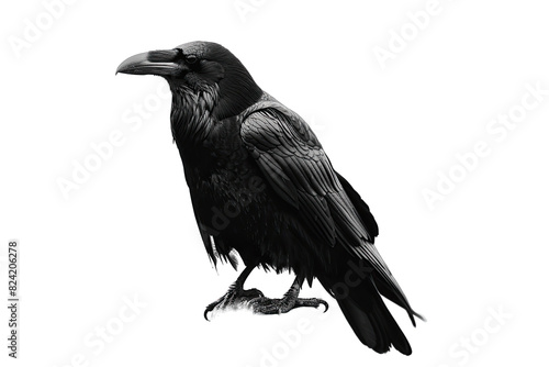 © twilight mist, Naklejka premium Raven in Black & White isolated on white background