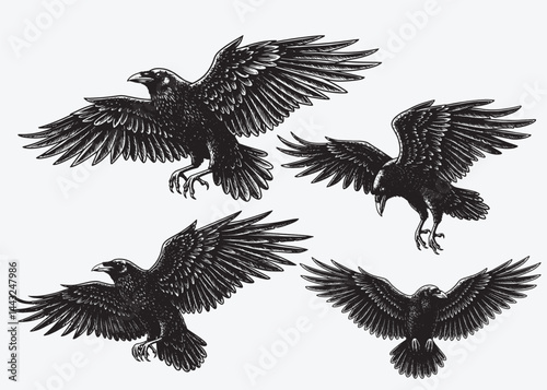 © Gabut Stock, Obraz premium Raven in flight engraving style