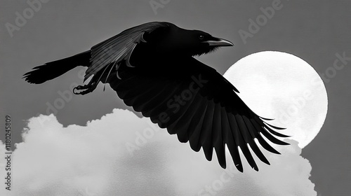 © SYAFI STUDIOS, Obraz premium Raven in flight, moonlit sky.