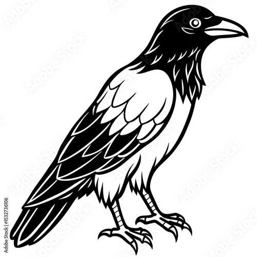 © Zahedul, Fototapeta premium Raven Ink line art vector