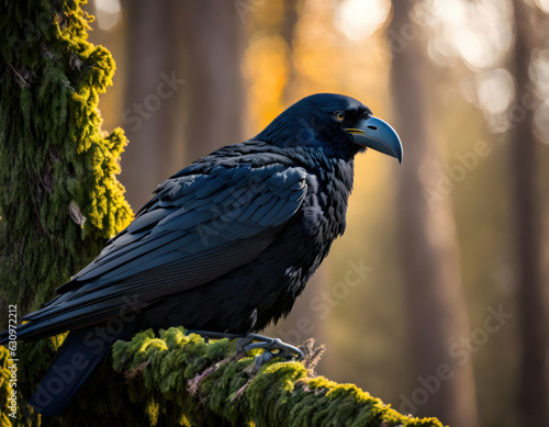 © Gintautas, Naklejka premium Raven on a fence. Created with Generative Ai technology.