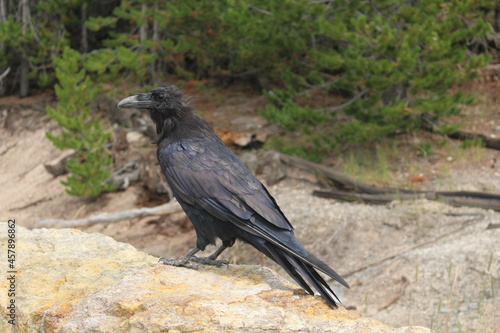 © Carine, Fototapeta premium Raven perched on stone wall