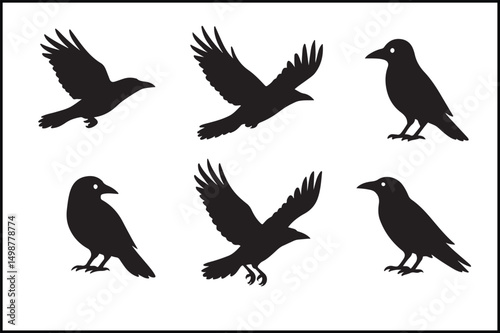 © Adventure, Obraz premium Raven Silhouette Flat Vector Art