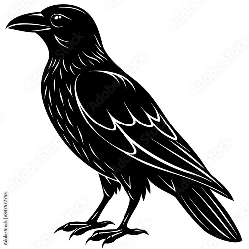 © Vector illustration, Obraz premium raven silhouette vector illustration