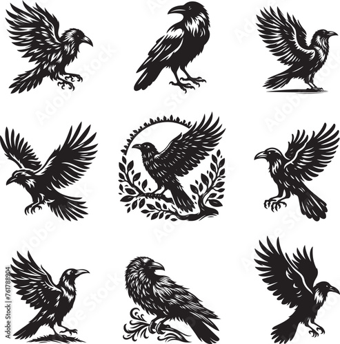 © PixSham, Obraz premium Raven silhouette vector illustration set