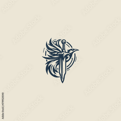 © Agatha, Naklejka premium Raven Sword Logo Template
