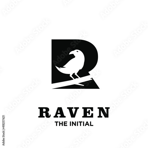 © Alpha Factory Std, Fototapeta premium Raven with initial R logo icon design