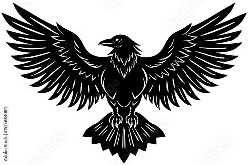 © Bappi, Fototapeta premium Raven with Wings Extended Vector Silhouette on White Background