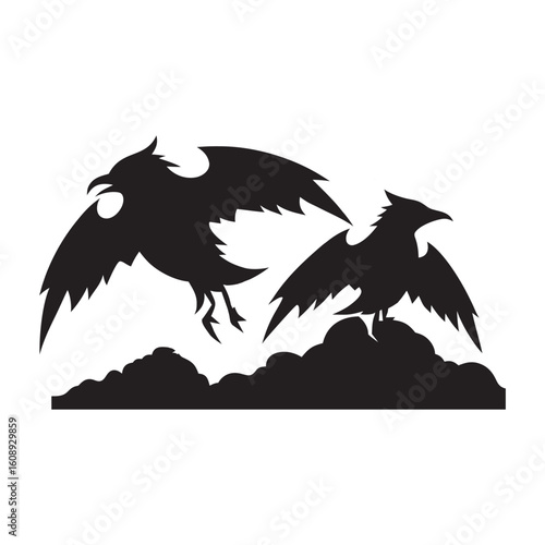© Maptahul, Obraz premium Ravens Flying Through Dark Storm Clouds