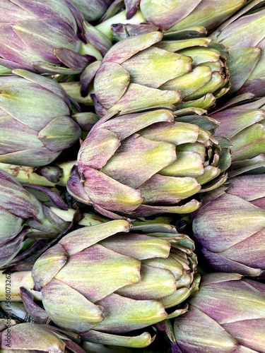 © berna_namoglu, Obraz premium raw artichokes as a background