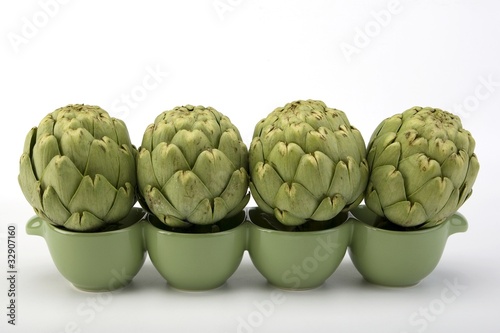© CocitaPhotography, Obraz premium Raw artichokes in a line