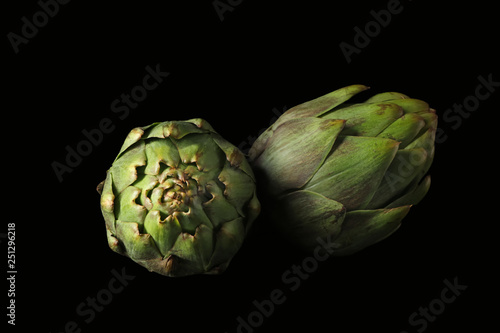 Obraz premium Raw artichokes on black background