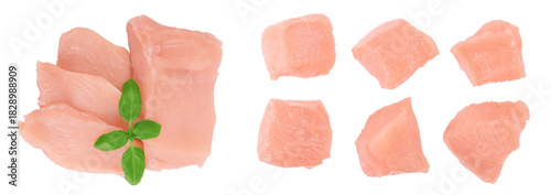 Fototapeta premium Raw chicken, fillet, isolated on white background. Top view. Flat lay