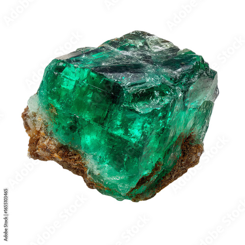 © I LOVE CUTE PNG`S, Fototapeta premium Raw emerald with jagged edges. Isolated white background. Png format