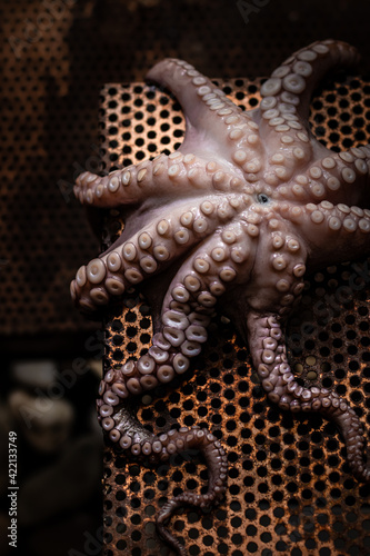 © Ola, Obraz premium Raw fresh octopus in the darkness