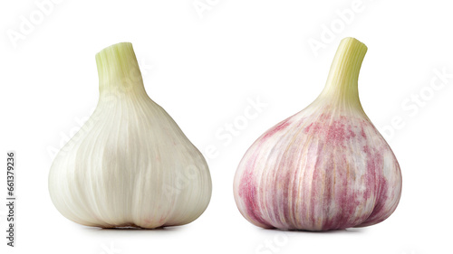 Obraz premium Raw garlic. Set of white and purple garlic. Raw heads of young garlic isolated on a white