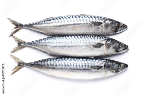 © Pixel-Shot, Naklejka premium Raw mackerel fish on white background
