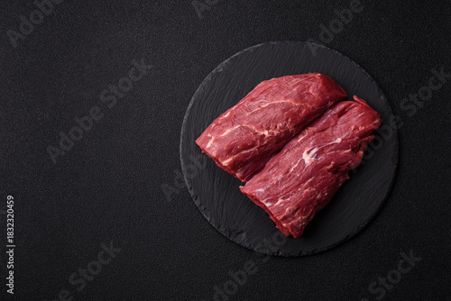 Naklejka premium Raw meat, fresh beef tenderloin or filet mignon for grilling. Raw beef...