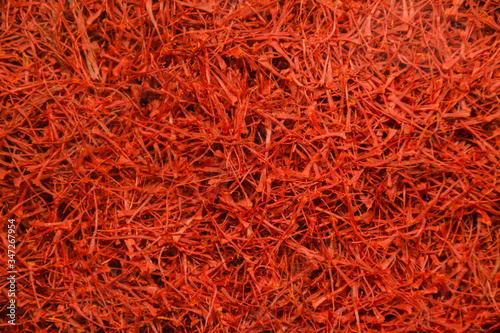 Fototapeta premium Raw Organic Red Saffron Spice in a Bowl.Luxurious flavour and expensive spices Grand Bazaar