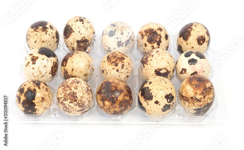 © Nuiphoto, Obraz premium Raw quail eggs on white background