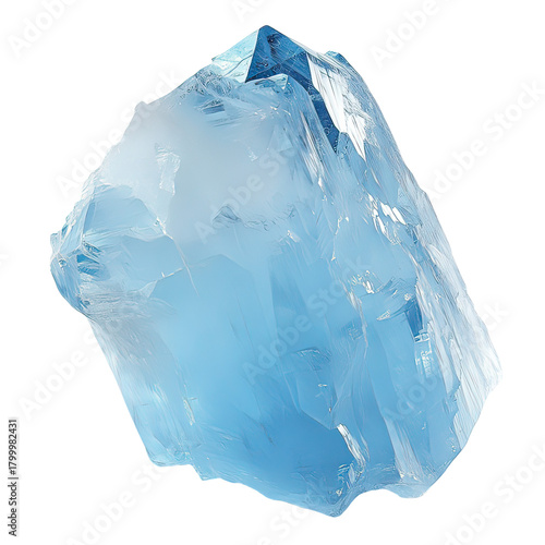 © MdManirul, Fototapeta premium Raw Topaz Crystal with Light Blue Tones on Pure White Background