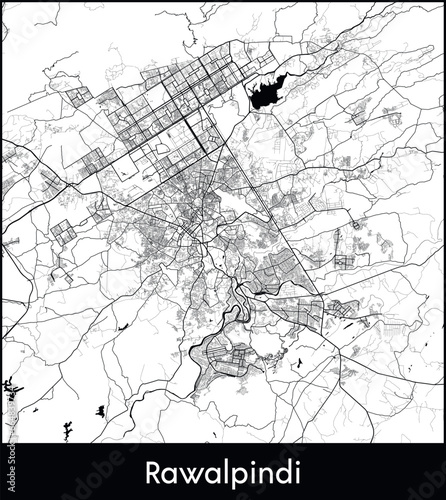 Fototapeta premium Rawalpindi Minimal City Map (Pakistan, Asia) black white vector illustration
