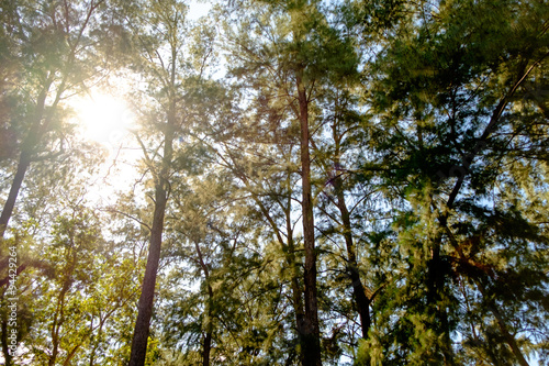 Obraz premium ray lighting at morning forest