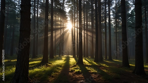 © Agung, Fototapeta premium ray of light in the pine forest in the morning