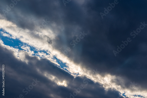 Fototapeta premium Rays of light shining throug dark clouds.Beautiful dramatic sky with sun rays.