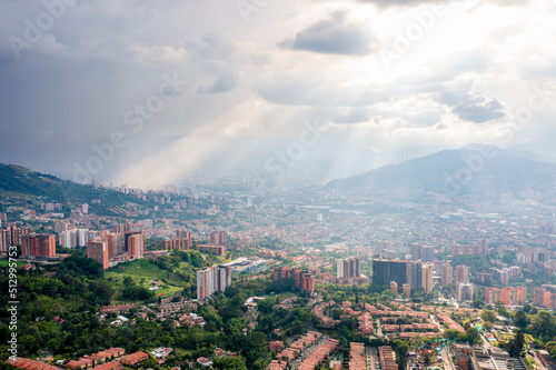 Fototapeta premium Rays of sun shining on the Colombian City of Medellin