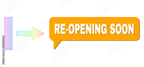 © imagecatalog, Obraz premium Re-Opening Soon and pull right vector. Spectral colored net pull right, and speech Re-Opening Soon bubble message. Chat colored Re-Opening Soon bubble has shadow.