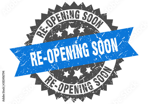Obraz premium re-opening soon stamp. grunge round sign with ribbon