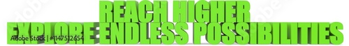 Obraz premium Reach Higher Explore Endless Possibilities, 3d text