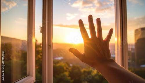 © rin.id, Obraz premium Reaching for the Sunset Through an Open Window