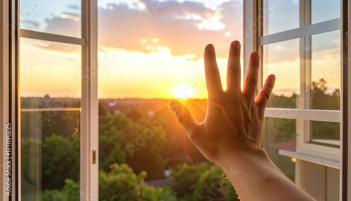 © rin.id, Obraz premium Reaching for the Sunset Through Open Windows