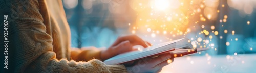© Ndoomyim, Fototapeta premium Reading in Warm Light with Cozy Sweater
