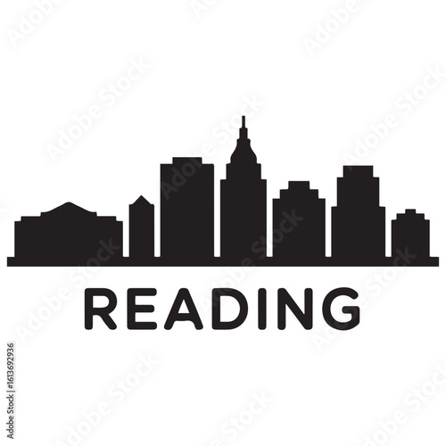 © Nargis, Naklejka premium Reading skyline horizontal banner. Reading, Pennsylvania. Vector template for your design. Vector black silhouette. with white background