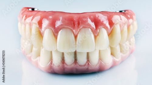 © Dental Pro Content, Obraz premium ready dental dentures for the upper and lower jaw in the bite on a white background