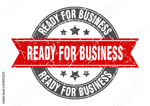 © Aquir, Obraz premium ready for business round stamp with ribbon. label sign