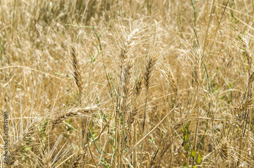 Fototapeta premium Ready-to-harvest dried wheat spike pictures,