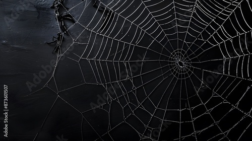 Obraz premium Real creepy spider webs on black banner