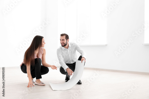 © Africa Studio, Obraz premium Real estate agent showing plan of apartment to client