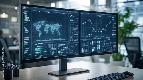 Fototapeta premium Real estate analytics software interface, graphs showing property trends,...