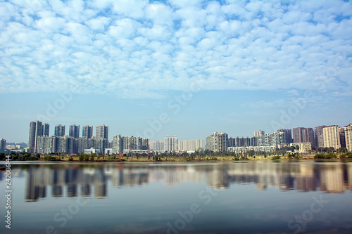 © Lili.Q, Naklejka premium Real estate development on the edge of Changsha West Lake Park