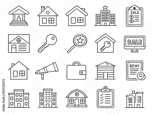 Fototapeta premium Real Estate Icon Set – Simple Line Art for Property, Housing, and Marketing