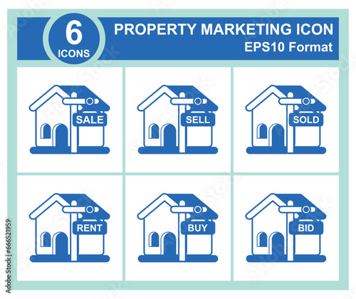 Fototapeta premium 6 Real estate icon set, vector illustration. Flat design style. EPS 10. Icon set for sale, sell, sold, rent, buy and bid property illustration