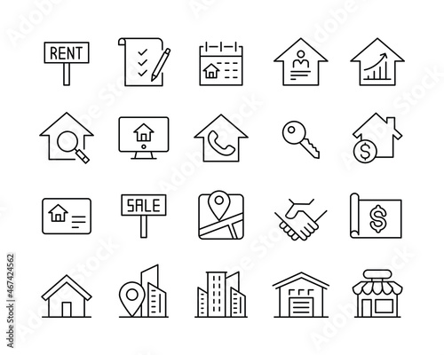 Fototapeta premium Real Estate Icons - Vector Line. Editable Stroke. Vector Graphic